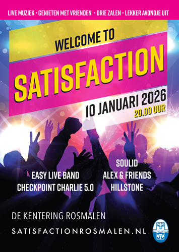 Zaterdag 10 januari 2026 kun je weer genieten van het jaarlijkse befaamde muziekfestival ‘Welcome to Satisfaction’.